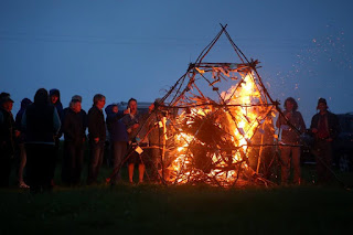 Visitors were invited to tie memories to the pyramid and by the end of the longest day it was festooned with paper and decorations all holding a special emotion for the person who put them there. With the help of local young people the pyramid was then crammed with more waste wood and set on fire as all stood and watched.