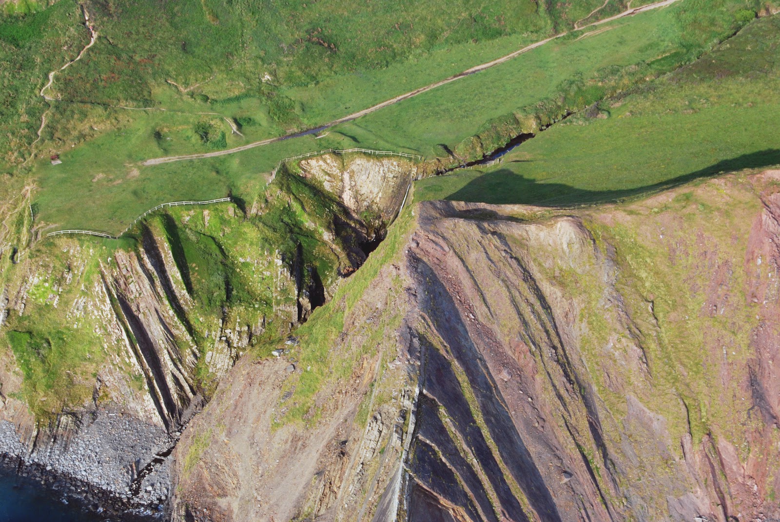 Many thanks to Peter Keene, author of "The Cliffs of Hartland Quay" for permission to use his wonderful aerial photographs taken in 2010. Peter, an Oxford based academic, writes Thematic Trails which provide a beautifully illustrated guide to various areas combined with information on local geology. Our favourite is, of course, his Hartland Quay title…………see if you can guess where these photos are. Copyright remains with Peter Keene who has kindly agreed to the HPA using them to promote the area……..thanks, Peter!