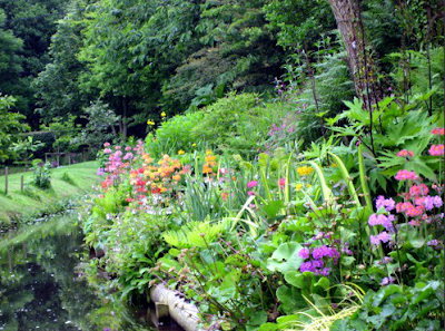 The large herbaceous border is reaching its full glory this month with Brother Cadfael and Winchester Cathedral roses set in traditional perennial borders. Hues of pink purple and silver. The Corydalis and Crambes are a must to see.