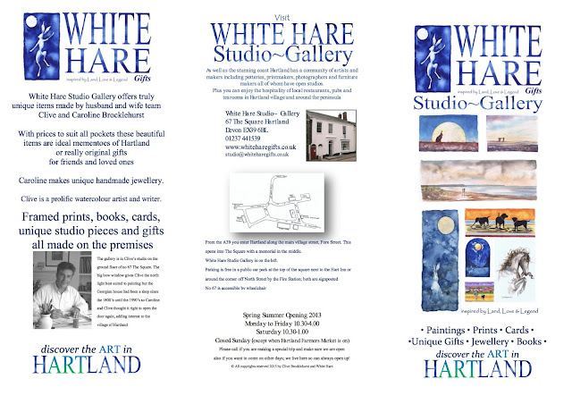 White Hare Gifts is in the heart of Hartland, providing visitors with a chance to discover the art in Hartland. Fabulous, unique quality mementoes of the area, from cards, handcrafted jewellery through to watercolour paintings and books. So, a visit to Hartland has now become even better. On the doorstep, you have some great pubs for a rather decent lunch or drink, and you may even feel like pre-booking a water colour workshop. Available for up to 6 people at a time, come and try watercolour painting and watch a demonstration by Clive. No drawing skills required, all materials provided and Clive guarantees you will go away with a painting you have done!